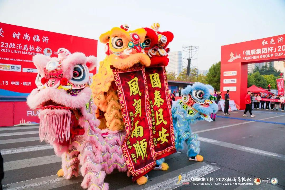 一场马拉松,一座城市的Party。本届临马在赛事主会场及赛道沿线上设置了30处群众演出现场,汇聚了当地2000多名群众,组成太极拳、健身气功与展演啦啦队等,为参赛选手上演一系列群众体育活动展演,成为赛道上一道靓丽风景线。而在终点处非遗展区,沂蒙布艺以其深厚的底蕴和精湛的技艺,为马拉松赛事的举办营造了浓郁的红色文化氛围;“沂蒙面塑”的精巧、糖画的美观、剪纸剪影的出神入化,为马拉松的运行增添了些许历史色彩。这些精美绝伦的展演,让参赛选手在悠悠沂河边感受了一场独特的文体旅融合炫酷路跑;以体育赛事为媒,对临沂文化的一次全方位、多角度的展示,让更多的人了解和认识临沂,“助跑”临沂文体旅发展。