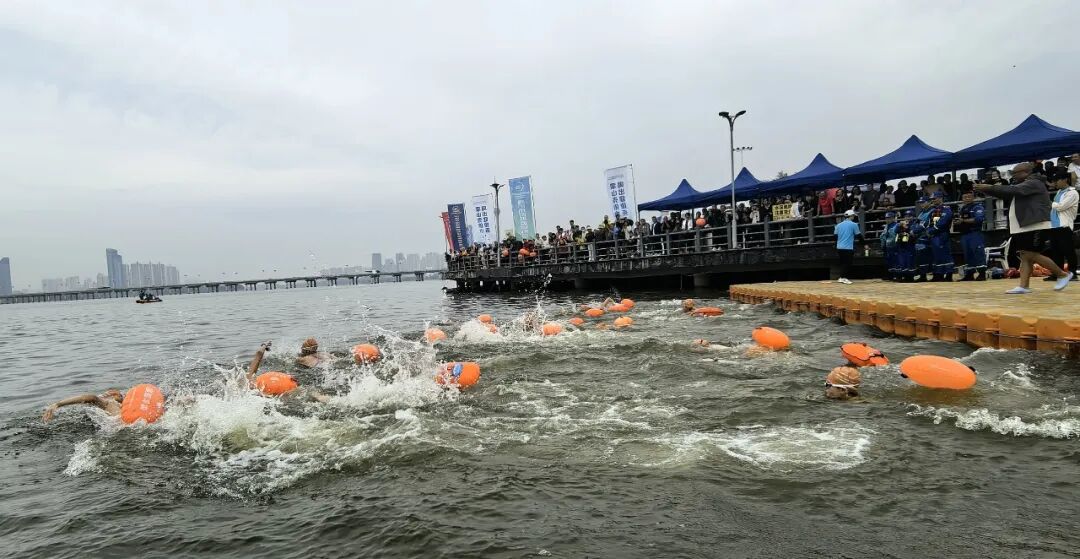 上午8点30分,随着一声清脆的哨响,比赛正式开始。530余名游泳爱好者如同离弦之箭般跃入沂河。入水的瞬间,水花四溅,打破了河面的宁静。选手们在水中舒展双臂、奋力划水,臂膀摆动间尽显力量。岸边观众的加油声、呐喊声不绝于耳,“加油!向前冲!”的助威声此起彼伏,为选手们注入源源不断的动力。