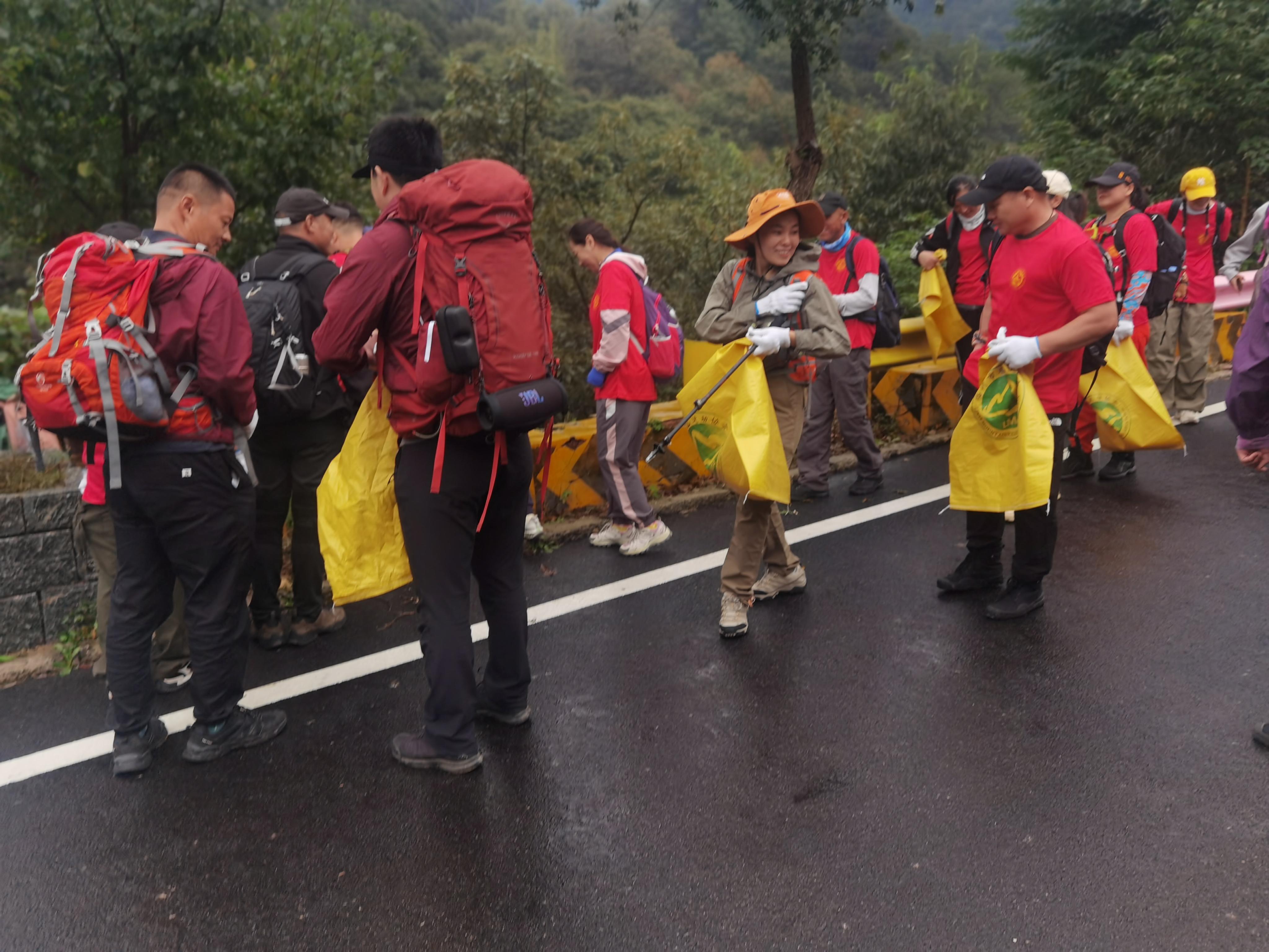 初秋,细雨微朦胧,但丝毫不影响大家清洁蒙山的热情,大家三五人一组,仔细捡拾道旁丛里的废品垃圾。最后,志愿者们将大包小包的垃圾汇总在集中存放点,并对垃圾进行了分类。大家通过环保公益行,在参与劳动的同时,也享受着空山新雨、徒步穿行的健康快乐,大家以实际行动守护绿色蒙山,迎接国庆节的到来。